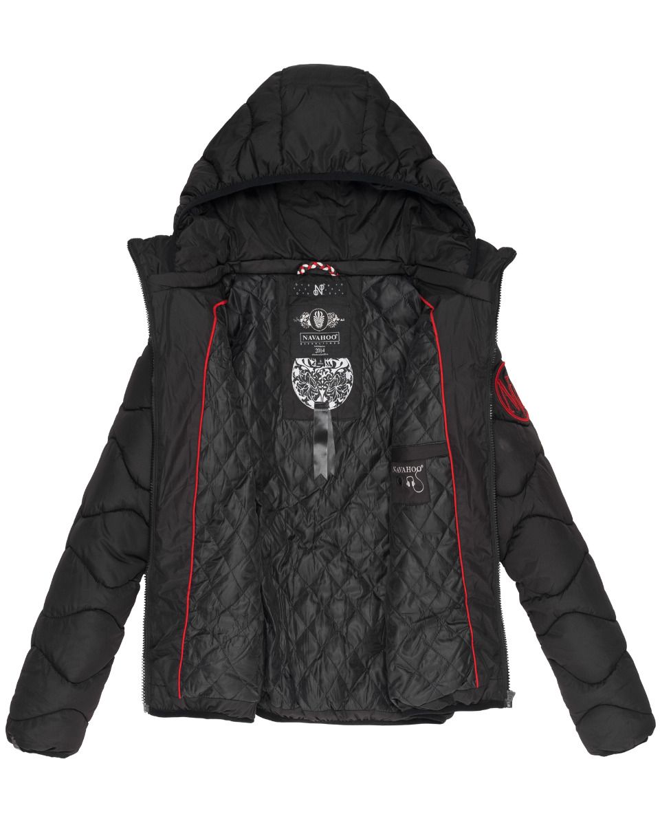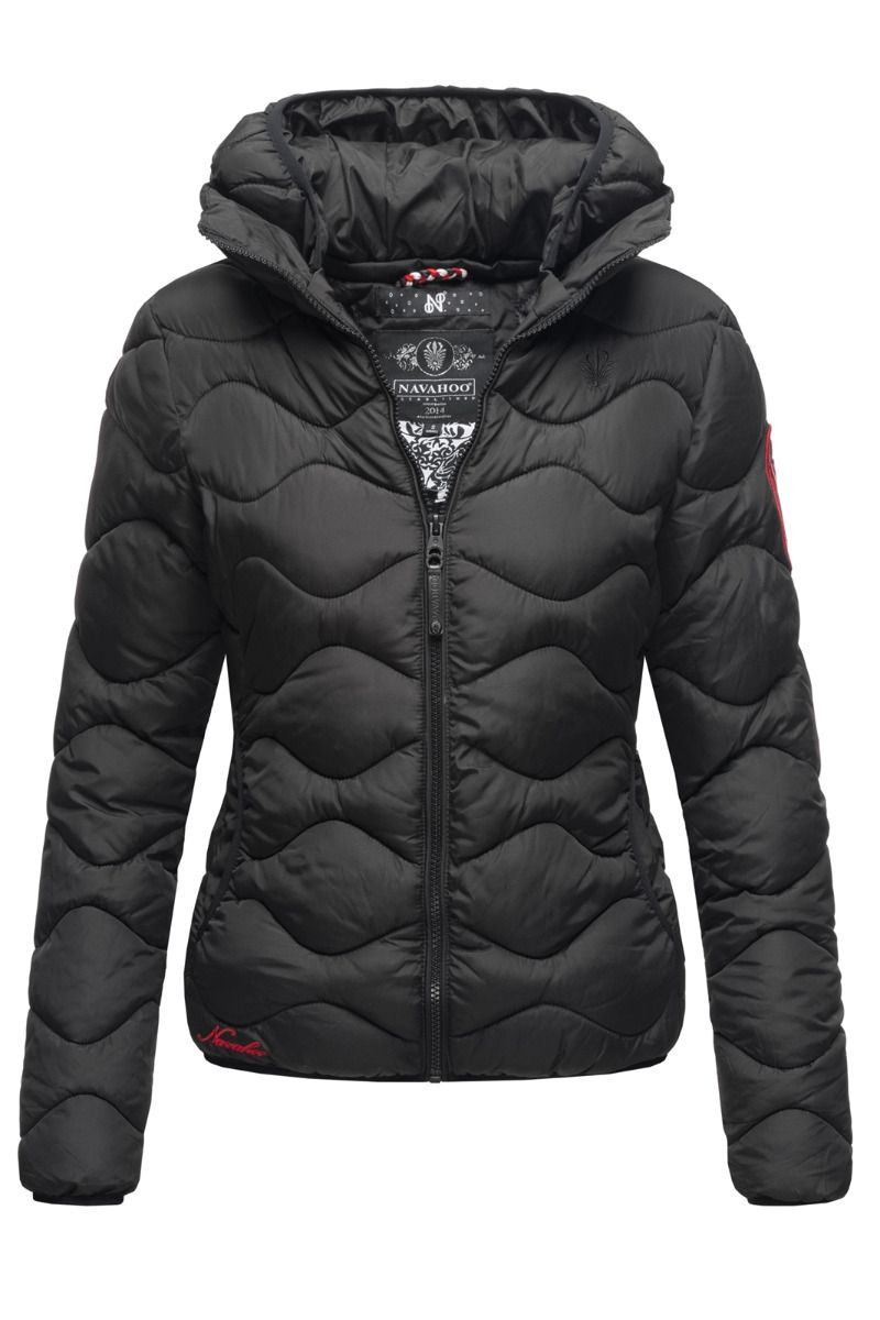 Dejlig let og varm dyne jakke med rib i ærmerne, side lommer og aftagelig hætte
