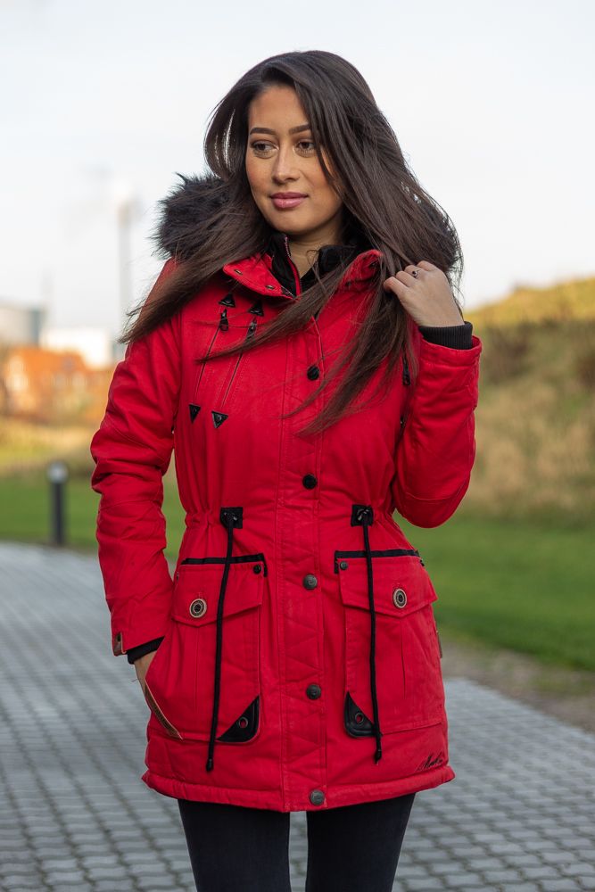 Jakken lukkes med 2 lynlåse, tryk knapper og har mange flotte detaljer.