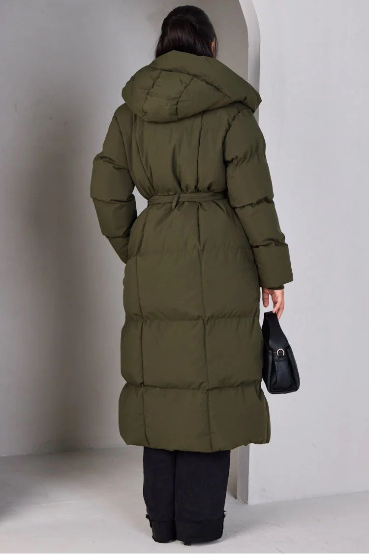 Dame Vinterjakke lang let Oversized med hætte i Olive