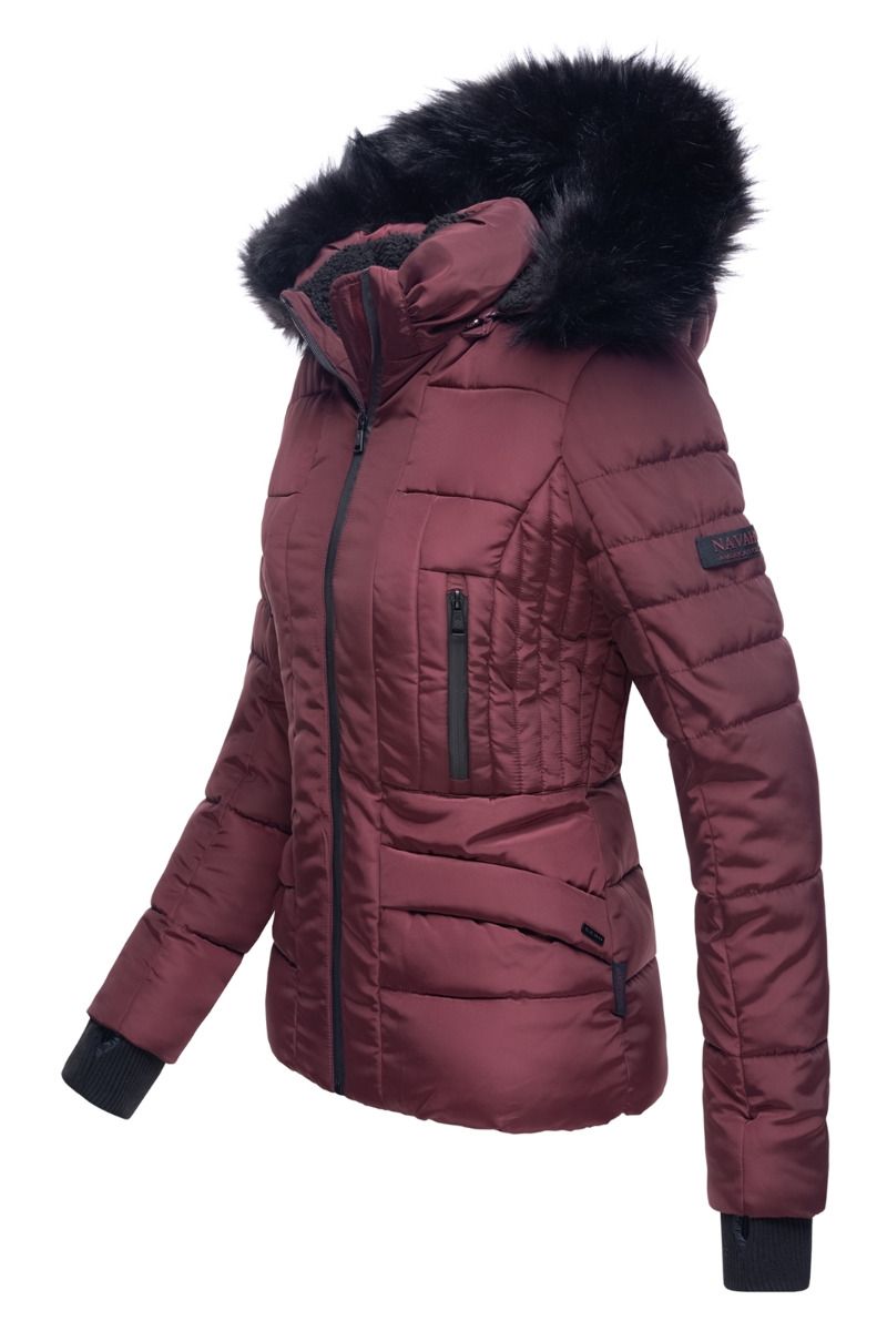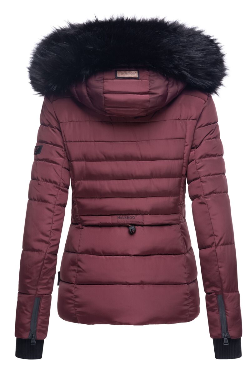Flot kort foret Dyne vinter jakke med høj krave og sort pels kant.