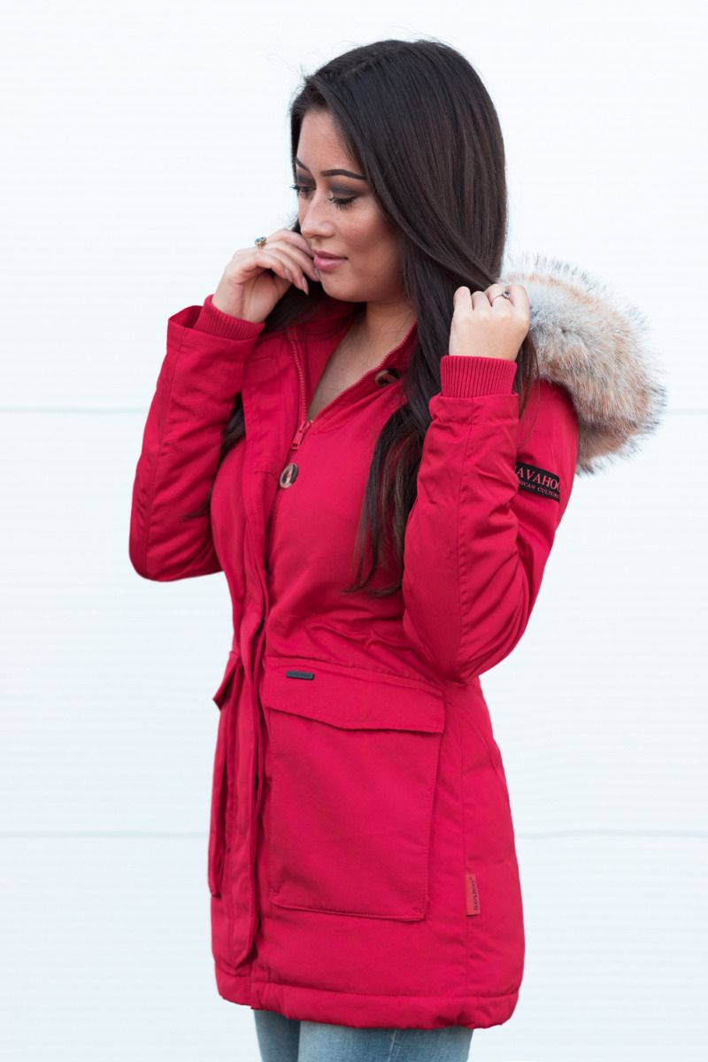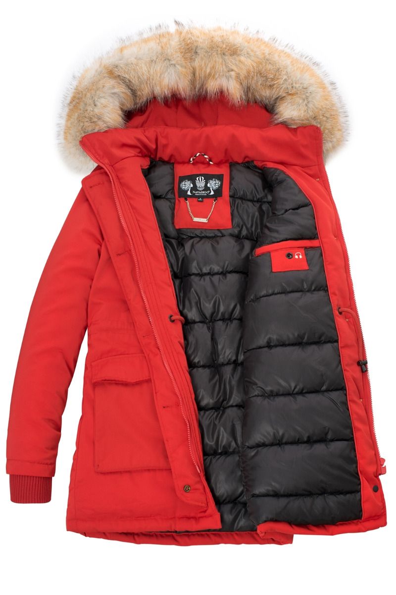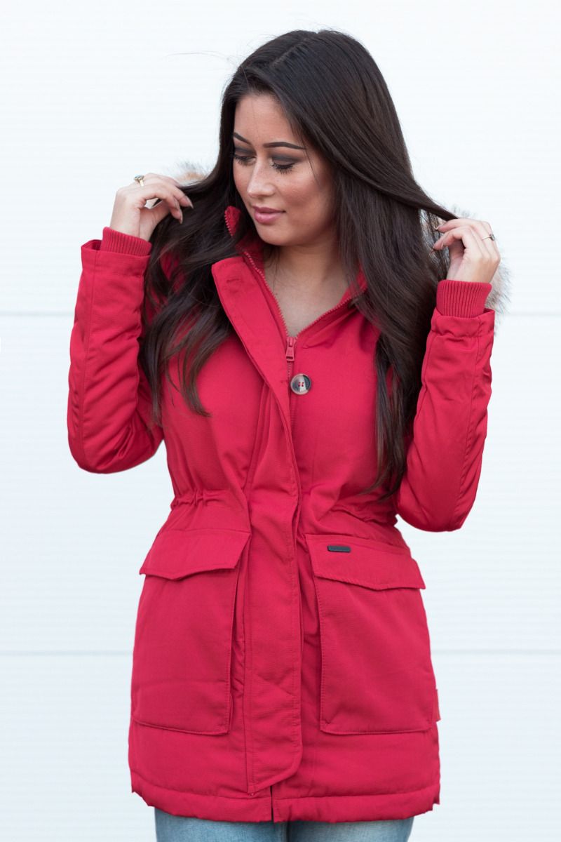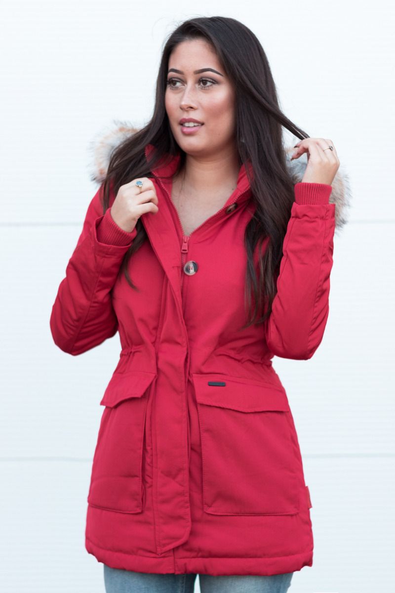 Dame vinterjakke med pels snow engel - Rød