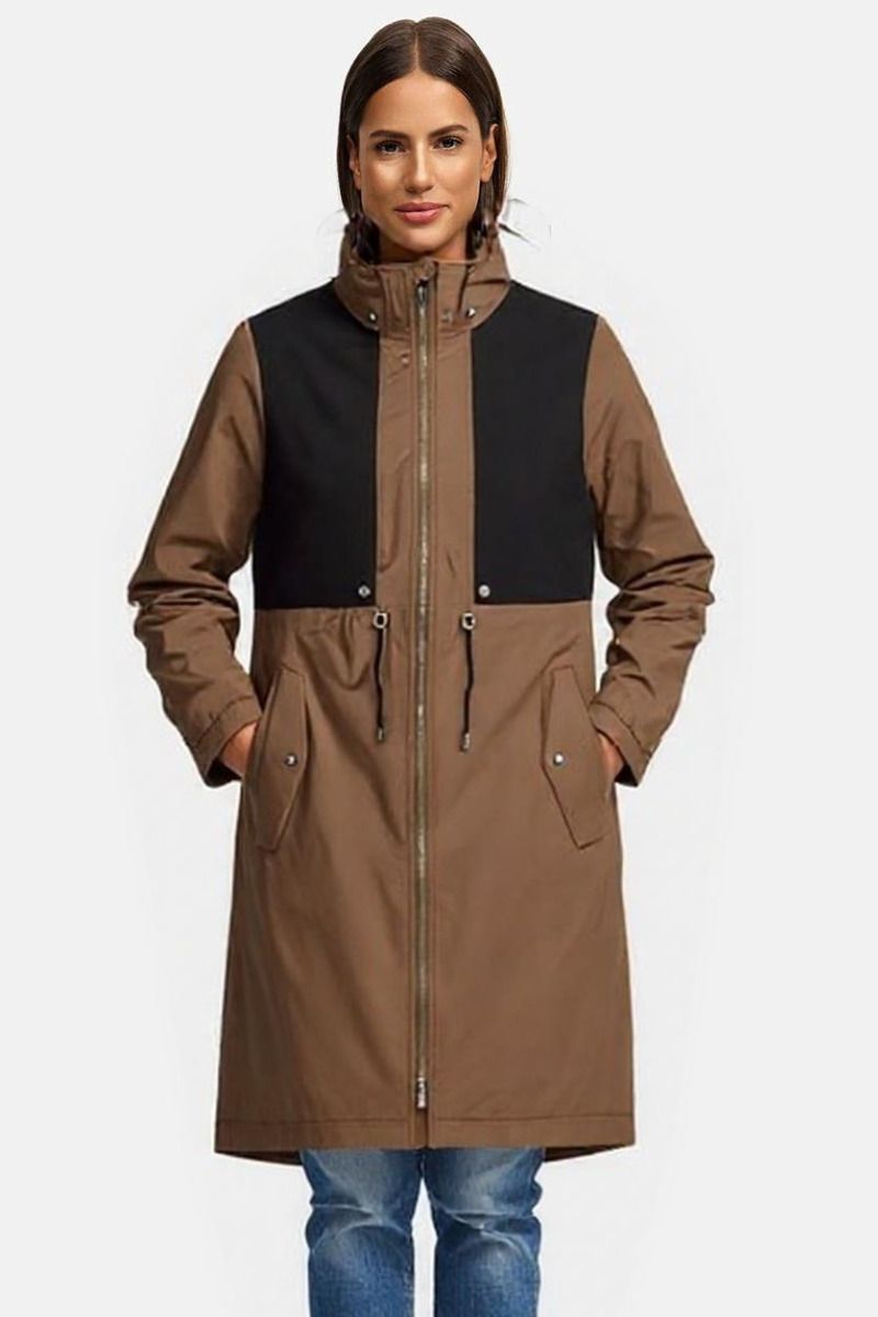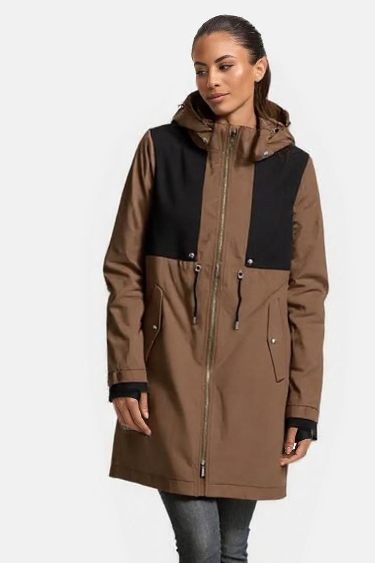 Dame Lang frakke model Lace i Teslan Stretch 10.000 - 8.000, med svejsede sømme, vatteret foer, snøre i livet, to lommer og høj krave.