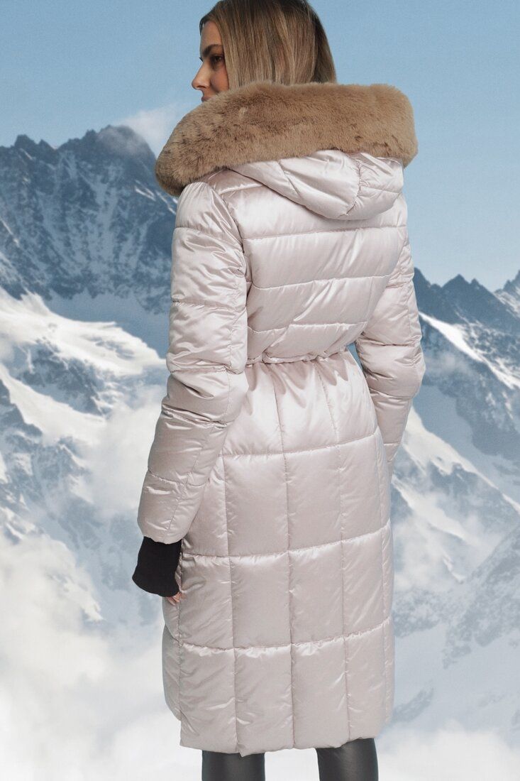 Lækker lang let quiltet jakke med pels, og et lang snit er et klart must-have til vintersæsonen 2024 / 25. Modellen har en imponerende, stor hætte med aftagelig pels, praktiske side lommer med dekorative elementer og lukning med 2 vejs lynlås, og mulighed for at snøre inf i taljen.