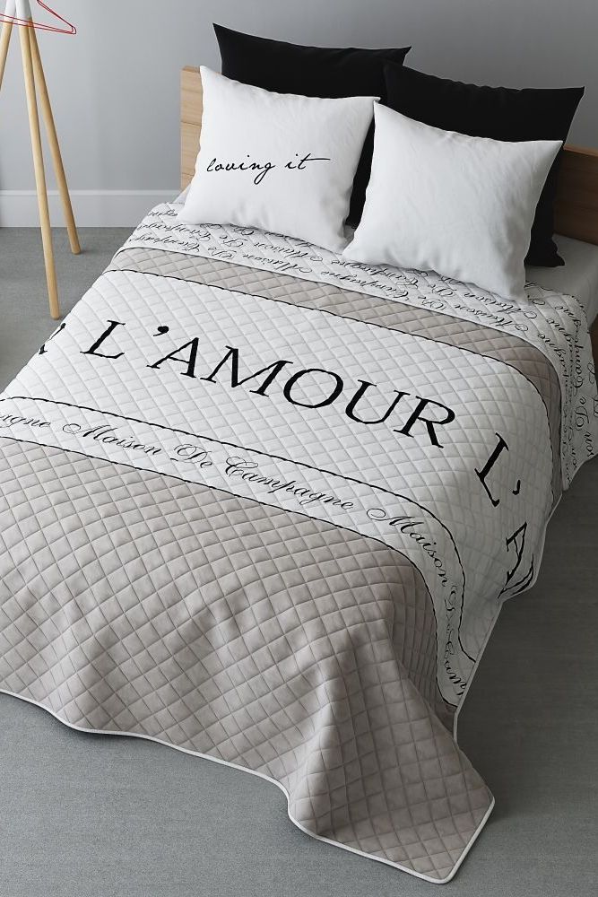 Du får her et lækkert vateret senge tæppe med trendy print.