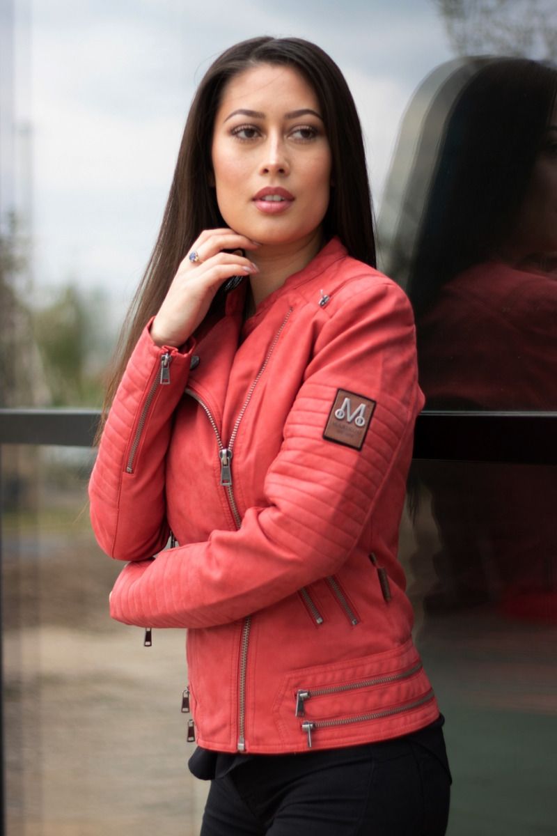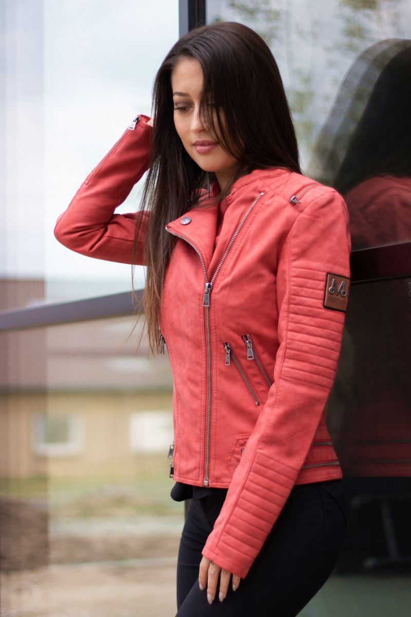 Læder look dame jakke i Rød